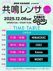2025年12月6日(土)代官山SPACE ODDで行われるライブへの出演が決定いたしました。